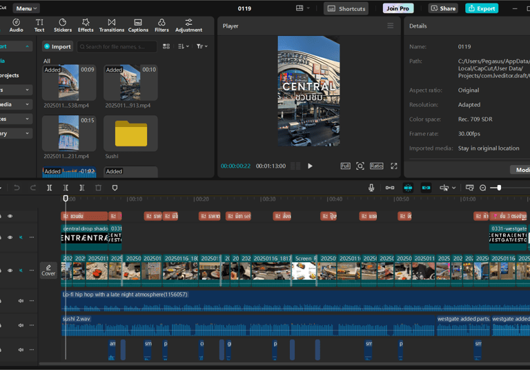 Using Capcut, I edited the style to match common Thai UGC that reviews or recommends restaurants. Graphics and text were added to highlight information. Capcut was chosen since it is free, allowing other branches to edit this style of content without cost.