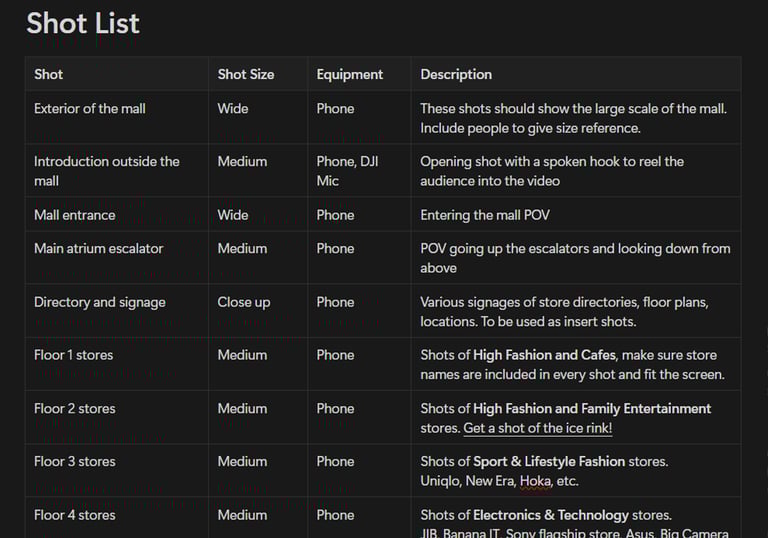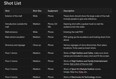The content should be entertaining while packing information about the mall and giving the audience a reason to watch.
