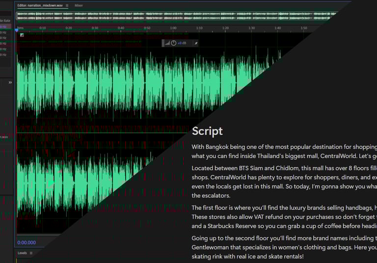 A script was written on Notion and the voiceover was recorded on Adobe Audition. The voiceover motivates the editing.